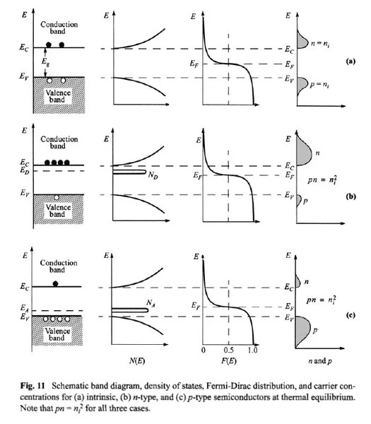 Fermi Level In Semiconductor / What Is Fermi Energy Level Know It Info / The fermi level plays an important role in the band theory of solids.. Fermi level is the highest energy state occupied by electrons in a material at absolute zero temperature. Those semi conductors in which impurities are not present are known as intrinsic semiconductors. Now when we calculate fermi energy of the semiconductor we find that it lies in between valence band and conduction band. Figure 11.7 energy level diagrams for a metal, a semiconductor, and an insulator. 2 ef in extrinsic semiconductors.